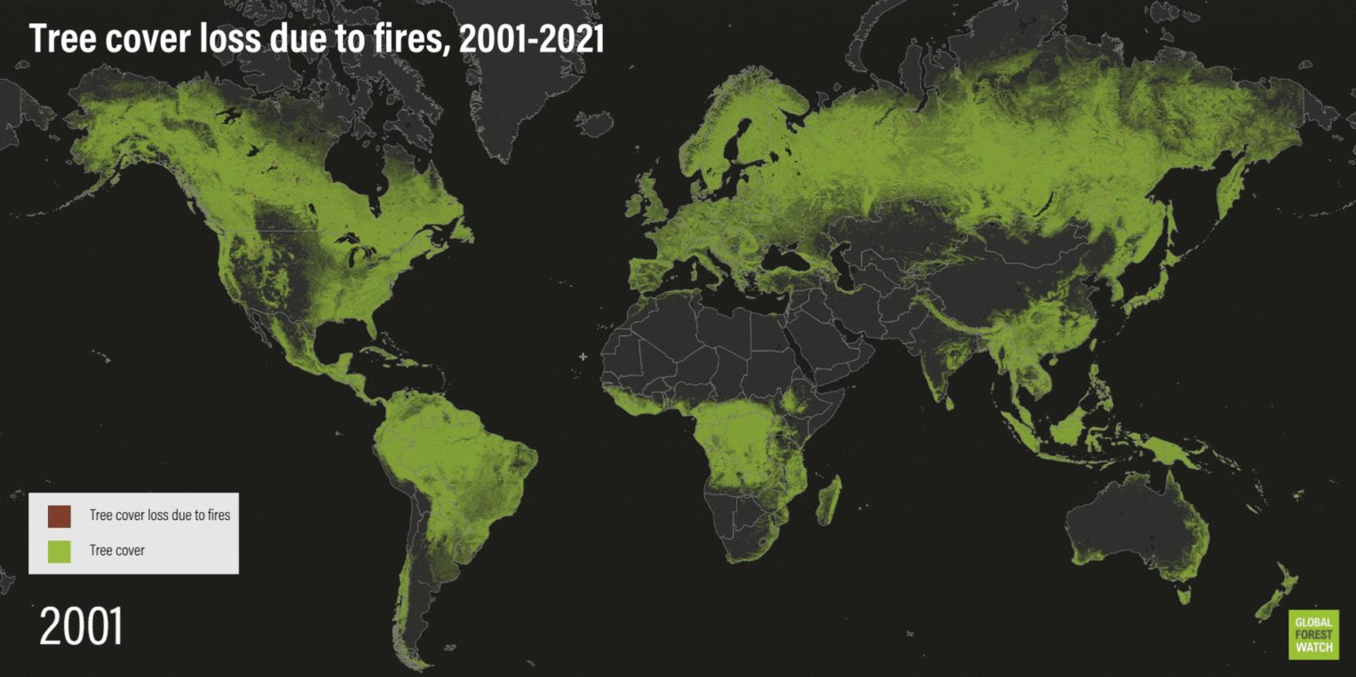 Fig.1. Tree cover lost due to fires, 2001-2021